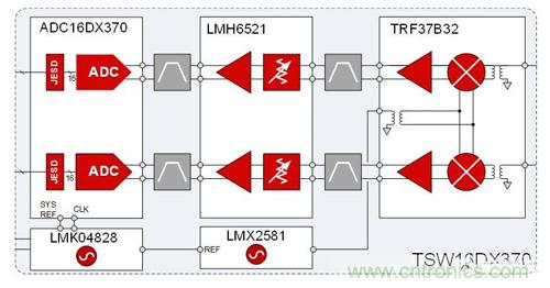 圖 2:TSW16DX370接收機(jī)系統(tǒng)參考設(shè)計(jì)