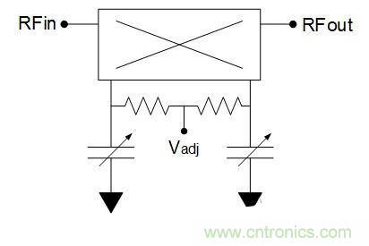 集中的波束無(wú)法在需要時(shí)導(dǎo)引波束,便用途有限。使用聯(lián)機(jī)相位調(diào)節(jié)電路更改各個(gè)元件的相對(duì)相位,可以導(dǎo)引波束。圖3顯示了基于變?nèi)荻O管的模擬相位調(diào)節(jié)器電路?;旌像詈掀靼演斎牒洼敵龅幕夭〒p耗保持在合理水平。如果信號(hào)路徑包括該電路,RF性能(尤其是互調(diào)失真)會(huì)由于變?nèi)荻O管的非線性性能而降低。