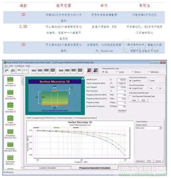 電子產(chǎn)品設(shè)計(jì)中,對(duì)于不同的結(jié)構(gòu)和要求,可能會(huì)用到不同的電磁場(chǎng)求解器。電磁場(chǎng)求解器(Field Solver)以維度來分:2D、2.5D、3D;逼近類型來分:靜態(tài)、準(zhǔn)靜態(tài)、TEM波和全波。