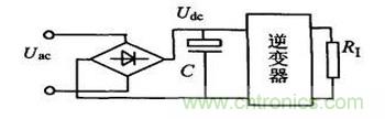 隨著各行各業(yè)控制技術(shù)的發(fā)和要求可操作性能的提高,許多場合的用電設(shè)備都不直接使用通用交流網(wǎng)提供的交流電作為電能來源,而是通過各種形式對其進行變換,從而得到各種所需的電能形式。它們的幅度、頻率、穩(wěn)定度及變化方式因用電設(shè)備的不同而不同,如電動機變頻調(diào)速器、綠色照明電源、開關(guān)電源等等,它們接入電壓網(wǎng)后,也有一個交流電源的利用率問題。上述產(chǎn)品有一個共同特點就是:利用橋式整流器和大容量的濾波電容實現(xiàn)AC/DC轉(zhuǎn)換,由工頻市電獲得直流電壓;雖然交流輸入電壓基本上未出現(xiàn)波形失真,但輸入電流卻不再保持正弦波形,而是呈不連續(xù)的峰值較高的脈沖。如圖1所示的橋式整流濾波電路。只有當(dāng)輸入交流電源Uac的瞬時值高于電容C的電壓時,整流二極管才導(dǎo)通,Udc基本上維持不變,可見二極管的導(dǎo)通角明顯小于180°,輸入電流波形嚴重失真。