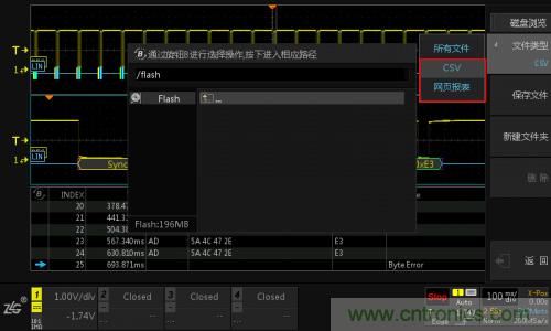 同時,支持解碼細節(jié)顯示,具有詳細的事件表(事件表內容包括開始時間、結束時間、名稱及數(shù)據),可以以報表網頁或CSV格式導出,方便工程師進一步分析,如圖11所示。