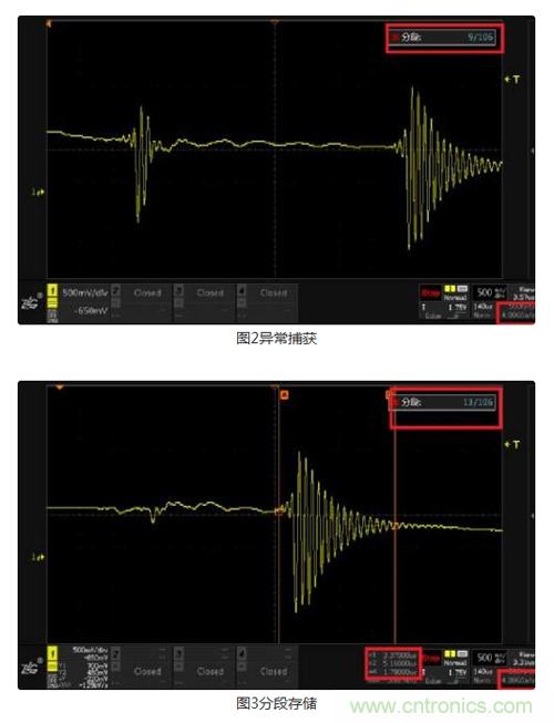 針對(duì)上述測(cè)試難題,示波器的分段存儲(chǔ)功能提供了良好的解決方案。