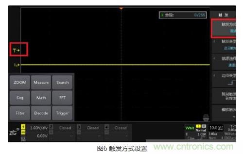 設(shè)置觸發(fā)方式為【普通】,將觸發(fā)電平調(diào)到合適的位置,等待小概率異常信號(hào)到來(lái)。
