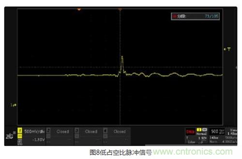 1、低占空比脈沖或猝發(fā)信號(hào)——信號(hào)與信號(hào)之間有較長(zhǎng)的空閑時(shí)間,很多情況下,即使有較大的存儲(chǔ),通過(guò)降低采樣率的方式也很難達(dá)到想要的采集時(shí)長(zhǎng),而分段存儲(chǔ)可以很好的完成。