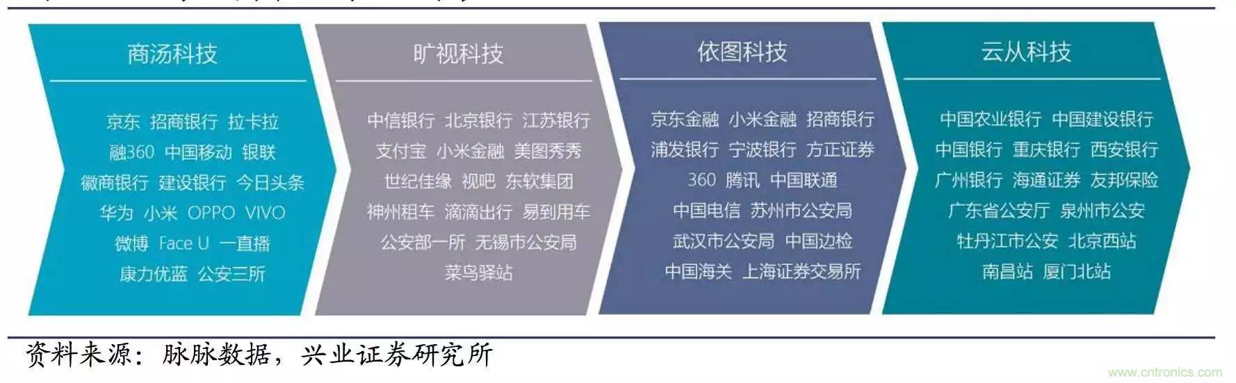 人臉識別在眾多領(lǐng)域遍地開花已經(jīng)是大勢所趨,四家獨角獸公司在應(yīng)用方面的布局也有所側(cè)重,他們各自憑借先進(jìn)的技術(shù),在各自擅長的領(lǐng)域進(jìn)行深度布局,積累了豐富的客戶資源。商湯科技側(cè)重在金融、安防、移動互聯(lián)網(wǎng)和手機(jī)領(lǐng)域;依圖科技側(cè)重在金融、安防、醫(yī)療和交通領(lǐng)域;曠視科技側(cè)重在金融、安防、零售、出行等領(lǐng)域;云從科技側(cè)重在金融、安防、酒店,以及其他創(chuàng)新領(lǐng)域。