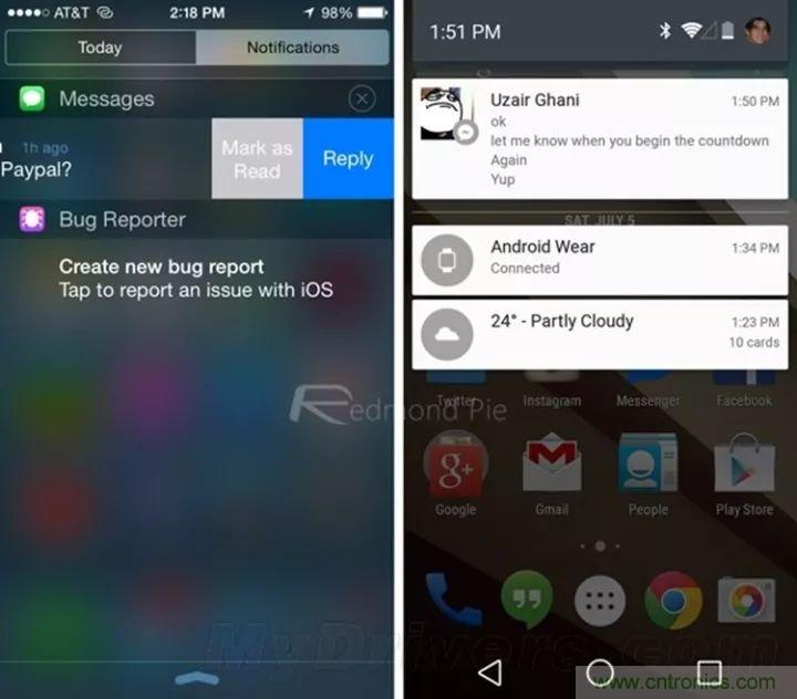 比如安卓系統(tǒng)是有一個和 iOS 一樣的統(tǒng)一推送服務(wù)器,但由于缺少谷歌服務(wù)框架,所以各 App 開發(fā)商都自己推送消息,導(dǎo)致 App 一直常駐后臺,這也是為什么大家覺得安卓機沒蘋果機流暢的主因之一(當(dāng)然也可以嘲諷蘋果機是假后臺機制)。