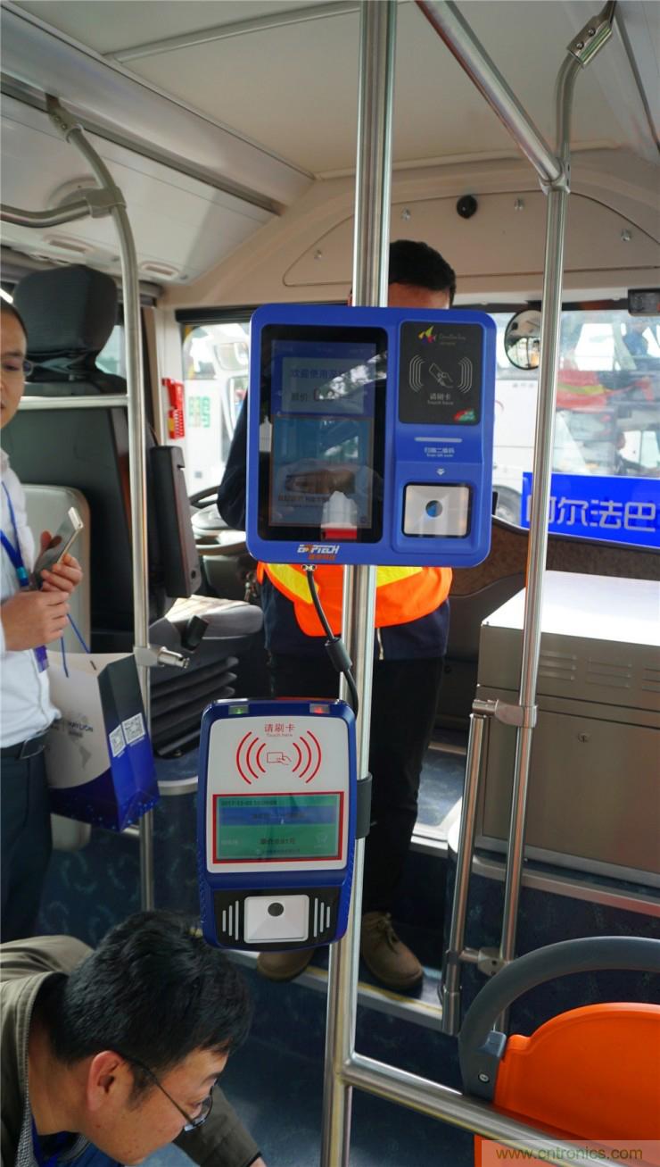 巴士上也安裝了相應(yīng)的付費刷卡機以及線路進度顯示圖