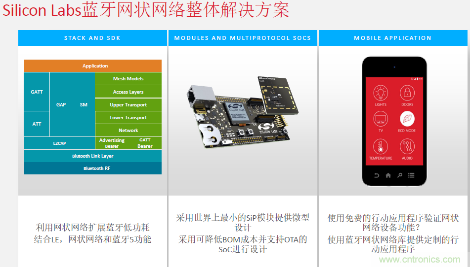 陳雄基認(rèn)為,目前的智能家居用戶,可以通過智能手機直接控制Zigbee和BLE的Mesh網(wǎng)絡(luò)中的所有連網(wǎng)產(chǎn)品,且只需要使用到一個藍牙接入點。