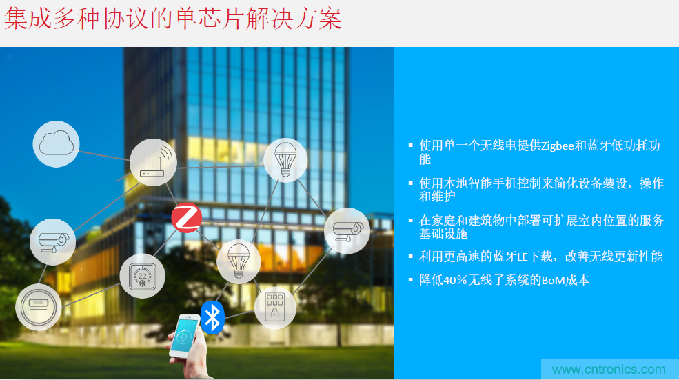 陳雄基以藍牙5的Mesh網(wǎng)絡(luò)和智能家居,尤其是智能照明中常用的ZigBee網(wǎng)絡(luò)為例,作了詳細的說明。就在一個多月前 Silicon Labs 為其Wireless Gecko片上系統(tǒng)(SoC)和模塊產(chǎn)品組合發(fā)布了新的動態(tài)多協(xié)議軟件,可同時在單一SoC上運行zigbee和低功耗藍牙(Bluetooth low energy),匯集了這兩種協(xié)議的關(guān)鍵應(yīng)用優(yōu)勢。這種多協(xié)議解決方案可實現(xiàn)物聯(lián)網(wǎng)(IoT)應(yīng)用的高級功能,且不會帶來雙芯片架構(gòu)的額外復(fù)雜性和硬件成本,從而將無線子系統(tǒng)物料清單(BOM)成本和尺寸降低達40%。