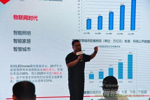 上海浦東智能照明聯(lián)合會秘書長代照亮則為現(xiàn)場觀眾帶來了物聯(lián)網(wǎng)時代智能照明領(lǐng)域的最新進(jìn)展。根據(jù)最新數(shù)據(jù)顯示,2017年全球智慧照明市場規(guī)模接近46億美元,年成長率高達(dá)95%,預(yù)計2020年可達(dá)134億美元,其中智慧家居照明的應(yīng)用將會逐漸普及,預(yù)估2020年占比將增至31%。