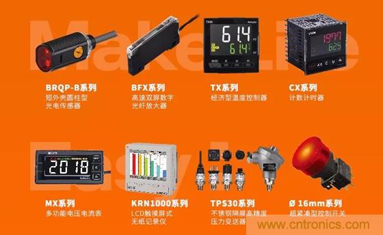 在此體系之下,企業(yè)近日再度推出了大量傳感器、控制器等新產(chǎn)品,其中包括短外殼圓柱型光電傳感器BRQP-B系列,高速雙屏數(shù)字光纖放大器BFX系列,溫度控制器TX系列,計(jì)數(shù)計(jì)時(shí)器CX系列,多功能電壓電流表MX系列,LCD觸摸屏式無(wú)紙記錄儀KRN1000系列,不銹鋼隔膜高精度壓力變送器TPS30系列,Ø 16mm控制開關(guān),以及節(jié)省布線時(shí)間50%以上的傳感器連接器CNE系列......