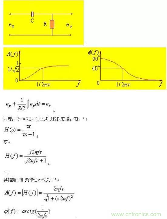 RC高通濾波器的電路及其幅頻、相頻特性如下圖所示。