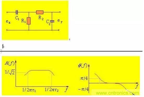 帶通濾波器可以看作為低通濾波器和高通濾波器的串聯(lián),其電路及其幅頻、相頻特性如下圖所示。