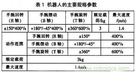 確定了空間結(jié)構(gòu)和手腕結(jié)構(gòu)后,可確定手腕回轉(zhuǎn)、手腕擺動及手腕旋轉(zhuǎn)三個姿態(tài)的自由度。其參數(shù)見表l (參數(shù)來于SSA2000工業(yè)機(jī)器人)。
