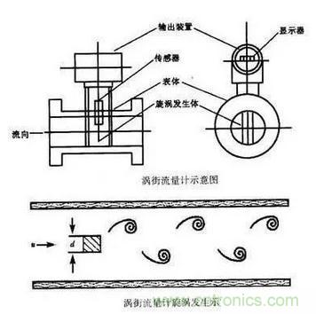 渦街流量計是在流體中安放一根非流線型游渦發(fā)生體,流體在發(fā)生體兩側(cè)交替地分離釋放出兩串規(guī)則地交錯排列的游渦的儀表。渦街流量計按頻率檢出方式可分為:應(yīng)力式、應(yīng)變式、電容式、熱敏式、振動體式、光電式及超聲式等。