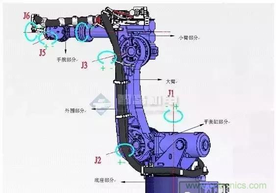 .常見機(jī)器人自由度數(shù)一般有5~6個(gè)。有些機(jī)器人還附帶有外部軸。
