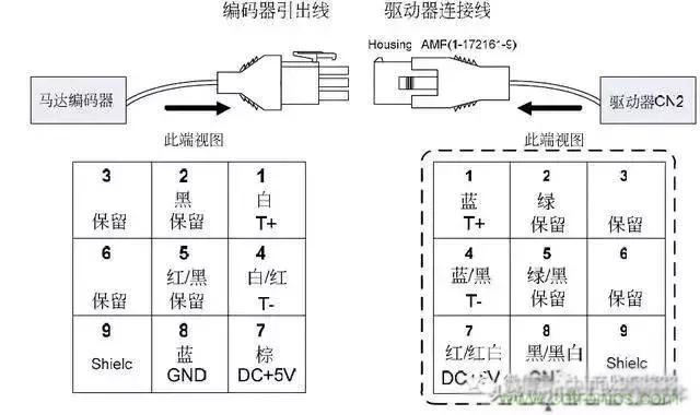 從上圖看出九個(gè)端子我們只使用了5個(gè),一個(gè)屏蔽線、電源線兩根、串行通訊信號(hào)(+-)兩根,與我們普通的編碼器接線差不多。