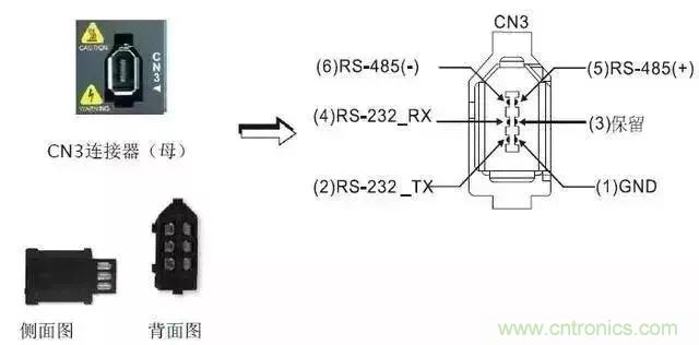 驅(qū)動(dòng)器通過CN3端口與電腦PLC、HMI等上位機(jī)相連接,采用MODBUS通訊來控制驅(qū)動(dòng)器,可使用RS232、RS485進(jìn)行通訊。