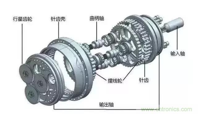 RV減速器:是少齒差嚙合,但相對(duì)于諧波減速器,RV減速器通常用的是擺線針輪,RV減速器由擺線針輪和行星支架組成。相比諧波減速器,RV減速器的關(guān)鍵在于加工工藝和裝配工藝。RV減速器具有更高的疲勞強(qiáng)度、剛度和壽命,不像諧波傳動(dòng)那樣隨著使用時(shí)間增長(zhǎng),運(yùn)動(dòng)精度會(huì)顯著降低,其缺點(diǎn)是重量重,外形尺寸較大。RV減速器用于轉(zhuǎn)矩大的機(jī)器人腿部腰部和肘部三個(gè)關(guān)節(jié),負(fù)載大的工業(yè)機(jī)器人,一二三軸都是用RV減速器。