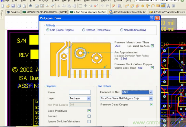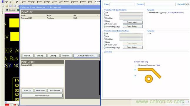 鋪好銅后,可以通過 Tools—Polygon Pours—Polygon Manager 來(lái)進(jìn)行一些相應(yīng)的鋪銅操作的處理。