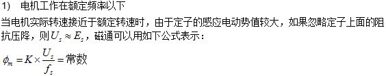 在交流電機(jī)的控制過程中,為了充分利用鐵芯,電機(jī)在額定運(yùn)行時設(shè)計磁通處于接近飽和的工作點(diǎn),所以必須控制電機(jī)的每極磁通在電機(jī)工作過程中保持基本不變。由上面兩式可知只要同時協(xié)調(diào)控制控制Es和Fs就可以達(dá)到上述控制要求。