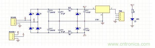 這是電源部分:其中的L7805穩(wěn)出5V電壓是給我的電平指示器供電用的,當(dāng)然,L7805要不要都可以,這看個(gè)人需求!