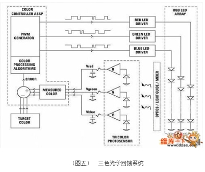 RGB?。蹋牛墓庠纯梢哉f是一個(gè)相當(dāng)具有吸引力的照明解決方案,但由于LED特性的變化造成RGB光源輸出偏移目標(biāo)色,三色式光學(xué)回饋雖然是一個(gè)經(jīng)實(shí)良好的解決方案,但是在運(yùn)作上卻有些復(fù)雜,必須透過良好的回授控制器設(shè)計(jì)才能夠簡化這類系統(tǒng)的實(shí)現(xiàn)動作。
