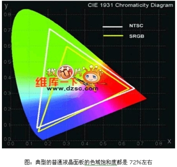 色域的呈現(xiàn)主要在背光的選擇上,眾所周知,液晶面板本身并不發(fā)光,而是必須透過(guò)背光的光線才能夠顯示畫(huà)面,傳統(tǒng)CCFL燈管在螢光材質(zhì)上的限制,紅光呈現(xiàn)能力偏弱,加上所搭配的彩色濾光片的混色效果較差,最終呈現(xiàn)的色域飽和度不佳,導(dǎo)致目前主流的LCD監(jiān)視器或電視在色域呈現(xiàn)能力上不足,多僅能達(dá)到72%NTSC左右。
