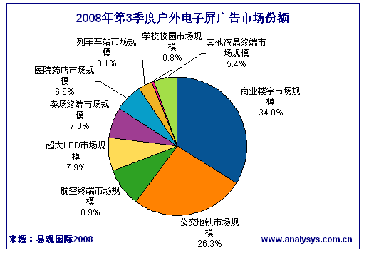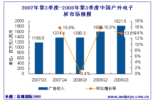 - 2008年第3季度戶外電子屏廣告市場收入同比增長53.5%