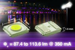 Vishay的新型LED為通用照明、消費類產品和其他需要高光通量的通用應用進行了優(yōu)化,可以替代傳統(tǒng)的白熾燈。典型的終端產品將包括街道照明、建筑照明、通用照明,以及日間行駛燈、車內照明、霧燈和車門未管警告燈等汽車應用。