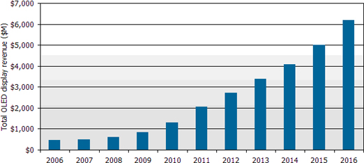 根據(jù)DisplaySearch最新發(fā)表季度OLED(有機發(fā)光二極管顯示器)出貨報告指出,第二季全球OLED出貨金額創(chuàng)新高達1億9千2百萬美元,較上一季成長32%,與去年同期相比成長22%。DisplaySearch預測全球OLED產(chǎn)值將從2008年6億美元,按每年33%復合成長率成長,估計到了2016年整體產(chǎn)值將達到62億美元;其中手機主屏仍是最主要的應用,2016年出貨金額估計為30億美元,同時OLED TV產(chǎn)值將達20億美元,成為OLED第二大應用產(chǎn)品。