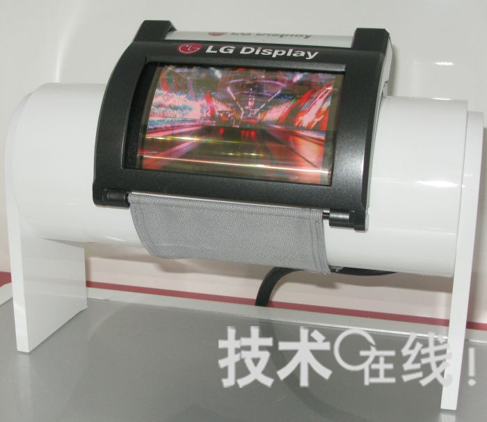 韓國(guó)LG顯示器在顯示器相關(guān)展會(huì)“FPD International 2009”(10月28~30日,太平洋橫濱會(huì)展中心)上,展出了可彎曲戴在手腕上的柔性有機(jī)EL顯示器。此為該公司在學(xué)會(huì)“SID 2009”上,于美國(guó)環(huán)宇顯示技術(shù)(UDC)展位公開(kāi)過(guò)的柔性有機(jī)EL顯示器更新版。