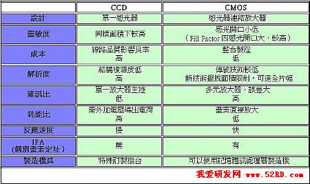 CCD與CMOS電路結(jié)構(gòu)之完整比較(摘錄自SHARP月刊)差異分析整體來說,CCD與CMOS兩種設(shè)計(jì)的應(yīng)用,反應(yīng)在成像效果上,形成包括ISO感光度、制造成本、解析度、雜訊與耗電量等,不同類型的差異:ISO感光度差異:由于CMOS每個(gè)畫素包含了放大器與A/D轉(zhuǎn)換電路,過多的額外設(shè)備壓縮單一畫素的感光區(qū)域的表面積,因此在相同畫素下,同樣大小之感光器尺寸,CMOS的感光度會低于CCD?!?br />