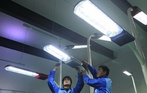圖:技術(shù)人員在檢測(cè)LED公路照明燈