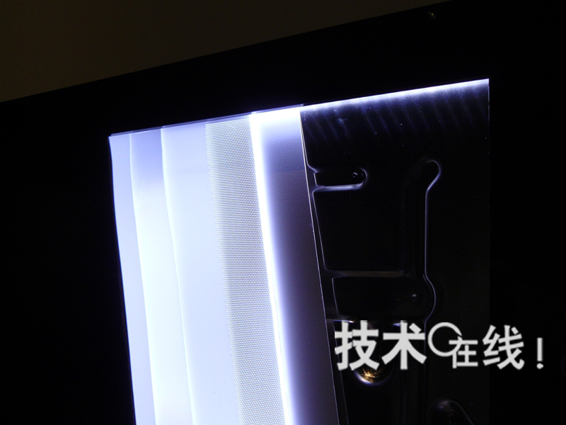 EX700系列雖然為調(diào)諧器內(nèi)置機型,但最薄部分只有22mm。這是通過采用白色LED作為背照燈光源,并將其配置在面板上下兩邊的邊緣而實現(xiàn)的。配備的白色LED數(shù)量“不便透露”(索尼)。