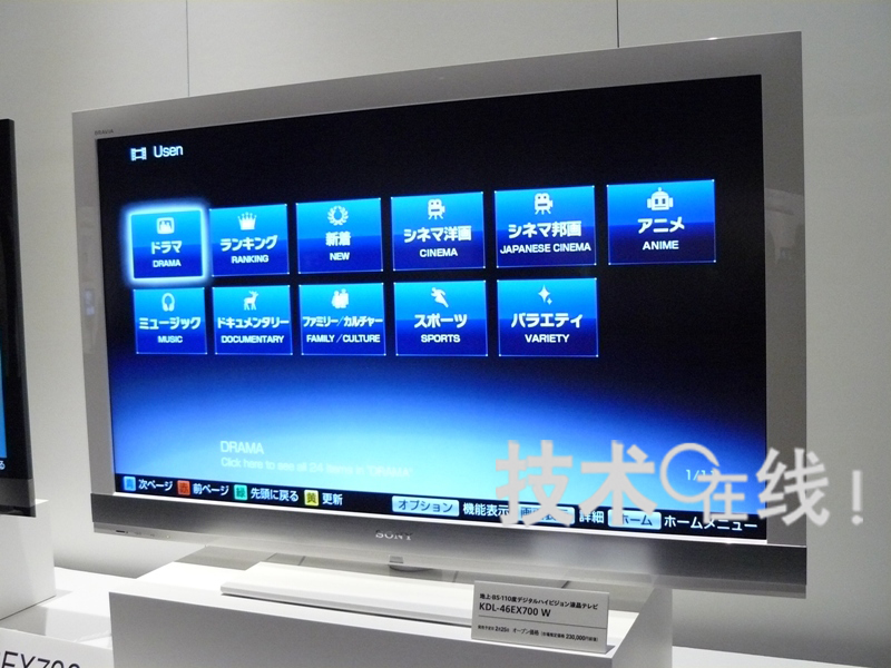 EX700系列還強化了網(wǎng)絡(luò)功能。新配備了名為“BRAVIA網(wǎng)絡(luò)頻道”的功能。用戶可利用索尼自主設(shè)計的操作畫面搜索并使用美國谷歌的視頻共享服務(wù)“YouTube”、USEN的VOD服務(wù)“U-NEXT”,acTVila的VOD(video on demand)服務(wù)“acTVila Video Full”。該公司預(yù)定2010年春季以后陸續(xù)啟動這些服務(wù)。