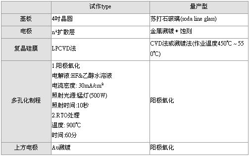 上述第1與第4項之流程系使用現(xiàn)有的成膜技術與材料;第2與第3項則為松下公司開發(fā)的多孔化PPS技術。有關第2項復晶硅膜制程必需將作業(yè)溫度與壓力等參數(shù)作最佳化組合,如此便可使蘇打石玻璃在450°C~550°C的低溫環(huán)境下完成長膜作業(yè)。第3項的電解液、液溫、電流密度等參數(shù)經過作最佳化后,在一定條件下進行陽極氧化,之后必需再度更改制程參數(shù)(processparameter)才可再進行陽極氧化作業(yè)。