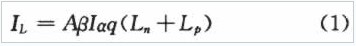 式中,A為p-n結(jié)面積,q是電子電量,Ln、Lp分別為電子和空穴的擴散長度,J表示以光子數(shù)計算的平均光強,α為p-n結(jié)材料的吸收系數(shù),β是量子產(chǎn)額,即每吸收一個光子產(chǎn)生的電子一空穴對數(shù)。