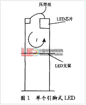 在LED引腳式封裝過程中,每個LED芯片是被固定在引線支架上的,LED芯片通過壓焊金絲(鋁絲)與引線支架形成了閉合回路,如圖1。若忽略引線支架電阻,LED支架回路光電流等于芯片光生電流IL??梢?,當(dāng)p-n結(jié)材料和摻雜濃度一定時,支架回路光電流與光照強度I成正比。
