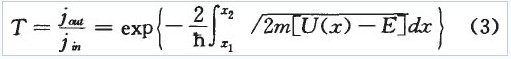 其中q為電子電量,m為電子質(zhì)量,矗為普朗克常數(shù),vx、vy、vz分別是電子在x、y、z方向的隧穿速度,T(x)為電子的隧穿概率。又任意勢壘的電子隧穿概率可表示為