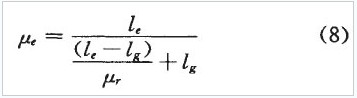 式中,μe磁芯的有效磁導(dǎo)率,脅為磁芯的相對磁導(dǎo)率,μr為磁芯的有效磁路長度,名為非閉合氣隙長度。