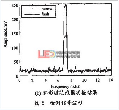 ⑤理論分析和實驗結(jié)果分析可得,該方法對LED支架回路電流具有較高的檢測精度,通過檢測支架回路電流激起的磁場在線圈兩端感生出電動勢的大小,并與焊接質(zhì)量合格的LED的檢測信號進行比較,實現(xiàn)對封裝過程中存在封裝缺陷的LED進行檢測。
