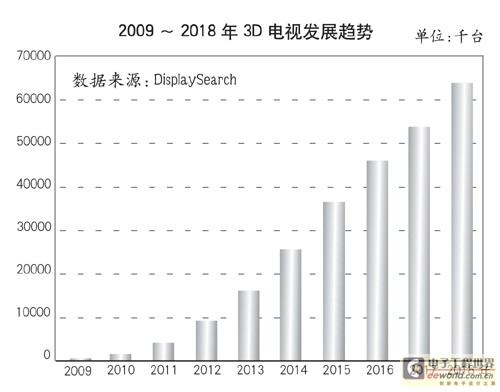 2010年是中國3D產(chǎn)業(yè)發(fā)展的關鍵之年。國外各大廠商索尼、松下、三星、LG都將在今年推出自己的3D電視。國外的電視機構中,美國DirecTV將于今年6月推出3個3D電視頻道;英國天空電視臺將于今年夏天推出3D節(jié)目;索尼與ESPN將在今年夏天3D直播2010南非世界杯部分場次比賽。對此,國內(nèi)彩電廠商也已經(jīng)開始行動起來,TCL在深圳機場、廣州機場推出裸眼電視,海信、海爾、長虹也都生產(chǎn)出3D電視樣機。但是與國外廠商相比,中國企業(yè)無論在技術還是在資金方面的投入力度還不夠大。