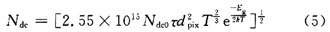對于CCD圖像傳感器而言,導致暗白點、白色損傷或顆粒的原因是由于光電二極管的暗電流,這也是決定畫質最重要的因素。固定圖像噪聲的起因是各像素中暗電流不均勻,即使沒有入射光一樣會發(fā)生,它與噪聲信號電壓的儲存時間成正比,并具有與溫度密切相關的性質,如式(5)所示: