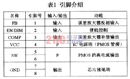 引腳描述如表1所示:
