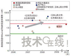 政府機構(gòu)的資助額大多為3年內(nèi)數(shù)億~30億日元的規(guī)模,德國“OPAL(OrganicPhosphorescentlightsforApplicationsintheLightingmarket)”項目為5年內(nèi)1億歐元(約合140億日元),遠(yuǎn)遠(yuǎn)多于其他項目。在發(fā)光效率方面迅速追趕白色LED有機EL照明雖然具有一些獨特的特點,但考慮到實際影后,還是避免不了在發(fā)光效率、使用壽命、成本等基本性能上與白色LED及現(xiàn)有照明技術(shù)一決高低。近來有機EL照明的性能得到了大幅提高。首先是發(fā)光效率。目前,有機EL照明在研發(fā)水平上比白色LED約落后約2年。2008年6月美國UniversalDisplay(UDC)發(fā)布的“102lm/W”的發(fā)光效率,與2006年3月日本日亞化學(xué)工業(yè)發(fā)布的白色LED的發(fā)光效率不相上下。山形大學(xué)的城戶表示,“已經(jīng)看到了實現(xiàn)200lm/W的曙光”)。