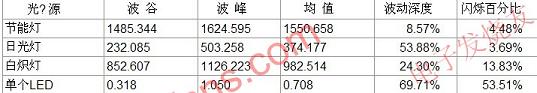 五.典型光源的閃爍結(jié)果