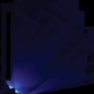 對于圖3中的例子,所用的是兩個側(cè)面發(fā)光高亮度LED器件,并使用經(jīng)過優(yōu)化的邊緣光源導光體進行光耦合。之后,為了確定系統(tǒng)中的自然光譜進行了基線光學建模。建模完成后,一個經(jīng)過定制的光學透鏡陣列被增加進來,以改善從LED器件發(fā)出的可以利用的光,并且將光的出射范圍擴展到比LED器件制造商原始設計更廣的地步。