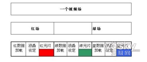 想要直接用RGB的LED來取代濾色片看上去好像很簡單,其實(shí)是不可能的。因?yàn)闉V色片是把每一個像素都分成三種不同顏色的子像素,如果直接用三種顏色的LED來取代濾色片,就必須采用小到和子像素尺寸一樣大的LED來照射每一個子像素,才不會使紅光照到綠光的子像素上。這樣,LED的個數(shù)就要幾百萬個之多。為維持像素?cái)?shù)不變,唯一的方法是重復(fù)使用這些像素,也就是采用時(shí)分復(fù)用制。這樣只要順序地發(fā)射出紅光、綠光、藍(lán)光,同時(shí)控制每個像素的薄膜晶體管(TFT),使其相應(yīng)地按照該像素在這種顏色時(shí)所應(yīng)當(dāng)具有的的強(qiáng)度來開啟液晶光閥。但是,要順序地發(fā)出紅、綠、藍(lán)三種顏色,并能形成一個彩色的視頻圖象,就必須利用人眼的視覺殘留作用。只要這三種顏色順序重復(fù)的周期小于人眼的視覺殘留時(shí)間,就可以在人們的大腦中形成一個彩色的圖象。視覺殘留時(shí)間實(shí)際上就是電視的場頻周期,在PAL制中為五十分之一秒。這也就要求在五十分之一秒的時(shí)間內(nèi)必須完成紅、綠、藍(lán)三個圖象的顯示。因此,這種方式被稱為“場順序”體制,也有人稱之為“色順序”體制。