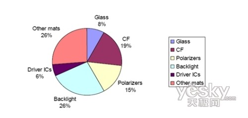 其中背光源的25%成本是基于CCFL的數(shù)據(jù),如果采用LED作為背光源,它所占的成本將大大超過這個比例,大約要占到50%的成本。采用場順序制以后,拿掉了濾色片就相當(dāng)于發(fā)光效率提高了70%,這是非??捎^的。這意味著LED的數(shù)量可以減少70%,LED的成本就可以減少70%。而且LED數(shù)量減少70%以后,其發(fā)熱量可以減少70%,耗電也可以減少70%。